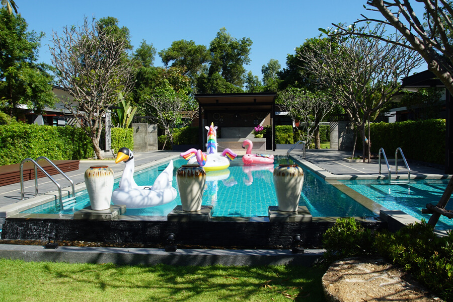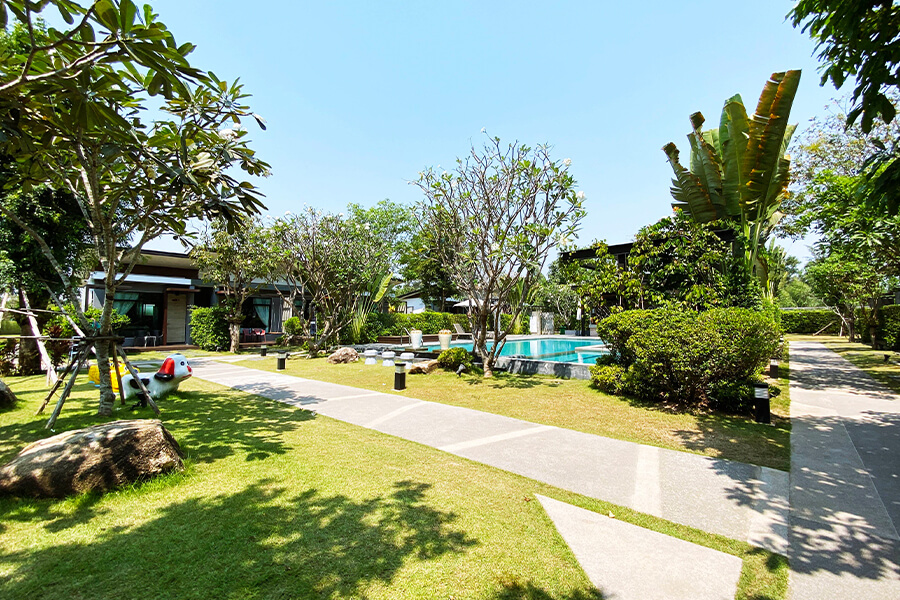เราเปิดให้บริการห้องพักทั้งหมด 5 รูปแบบ ได้แก่ สุพีเรียร์, ดีลักส์, วิลล่า, แฟมิลีรูม และ แฟมิลีเฮ้าส์ รวมทั้งหมด 69 ห้อง และ บ้านพัก 1 หลัง